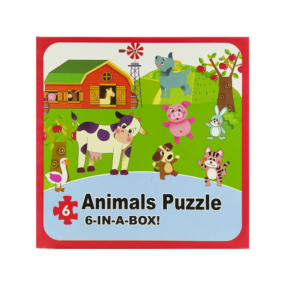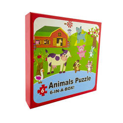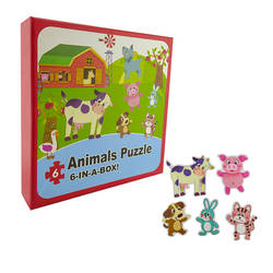 - Puzzle de diferentes animales de la granja entre ellos un conejo, un perro, una vaca, un chancho, una cabra y un gato, todo en una bolsa hermética para proteger el producto de los factores ambientales.