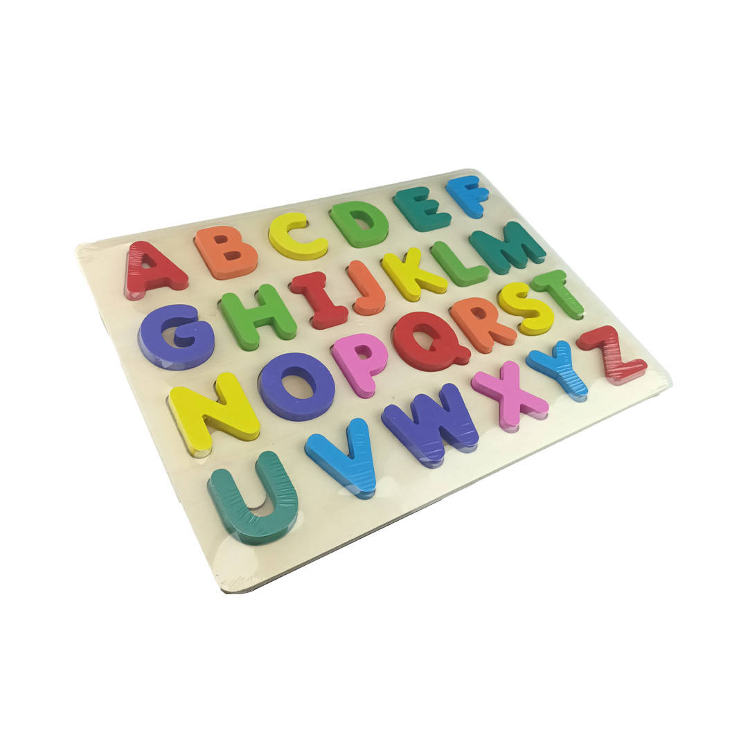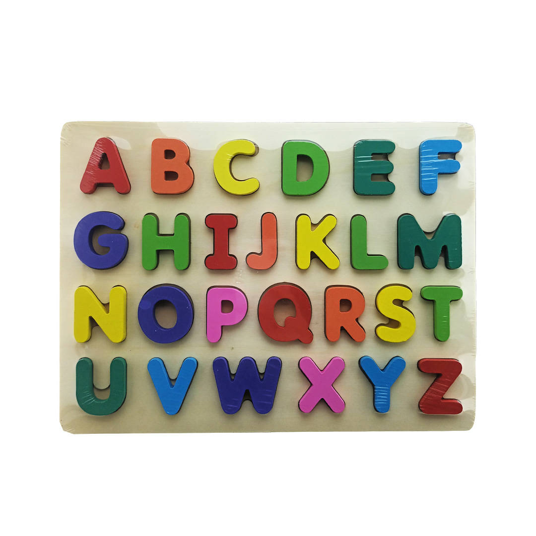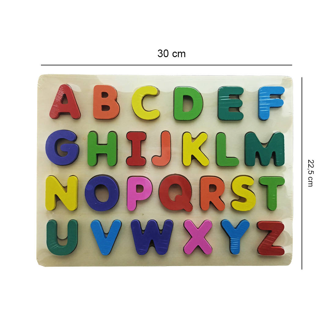 - Puzzle de madera para encajar letras del abecedario, figuras o números.