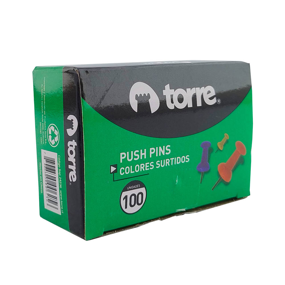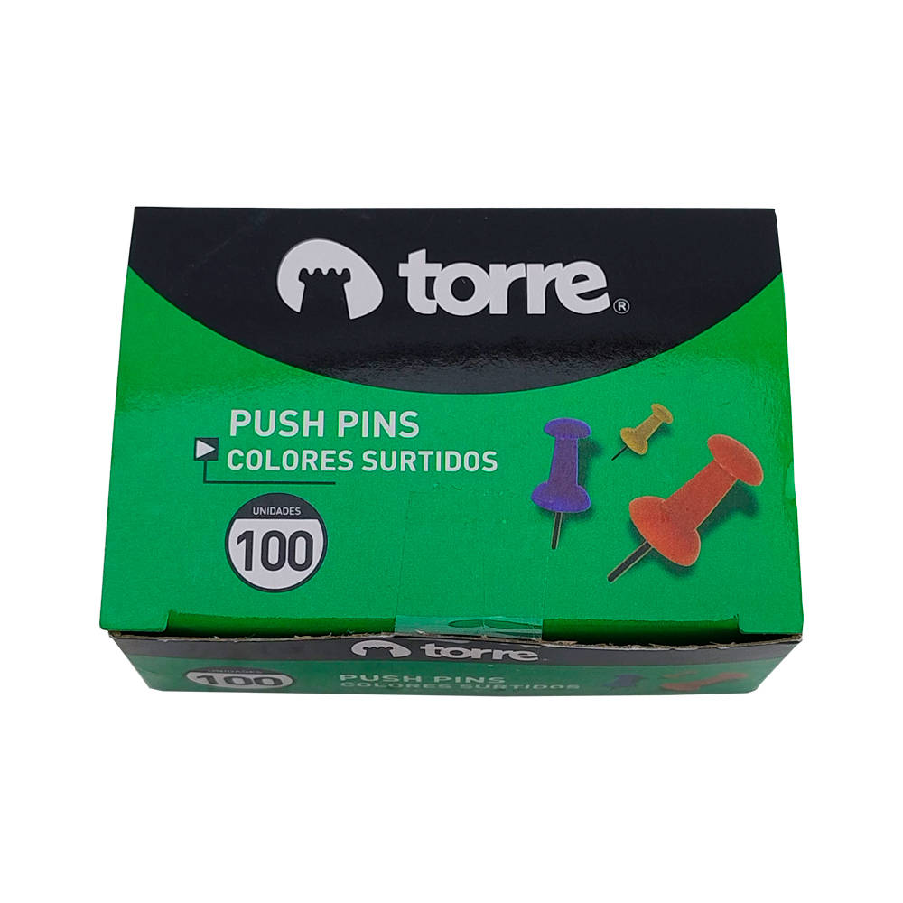 - Alfileres tipo push pins de diferentes colores para diversas aplicaciones.