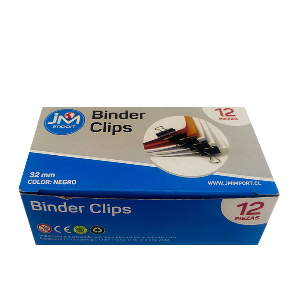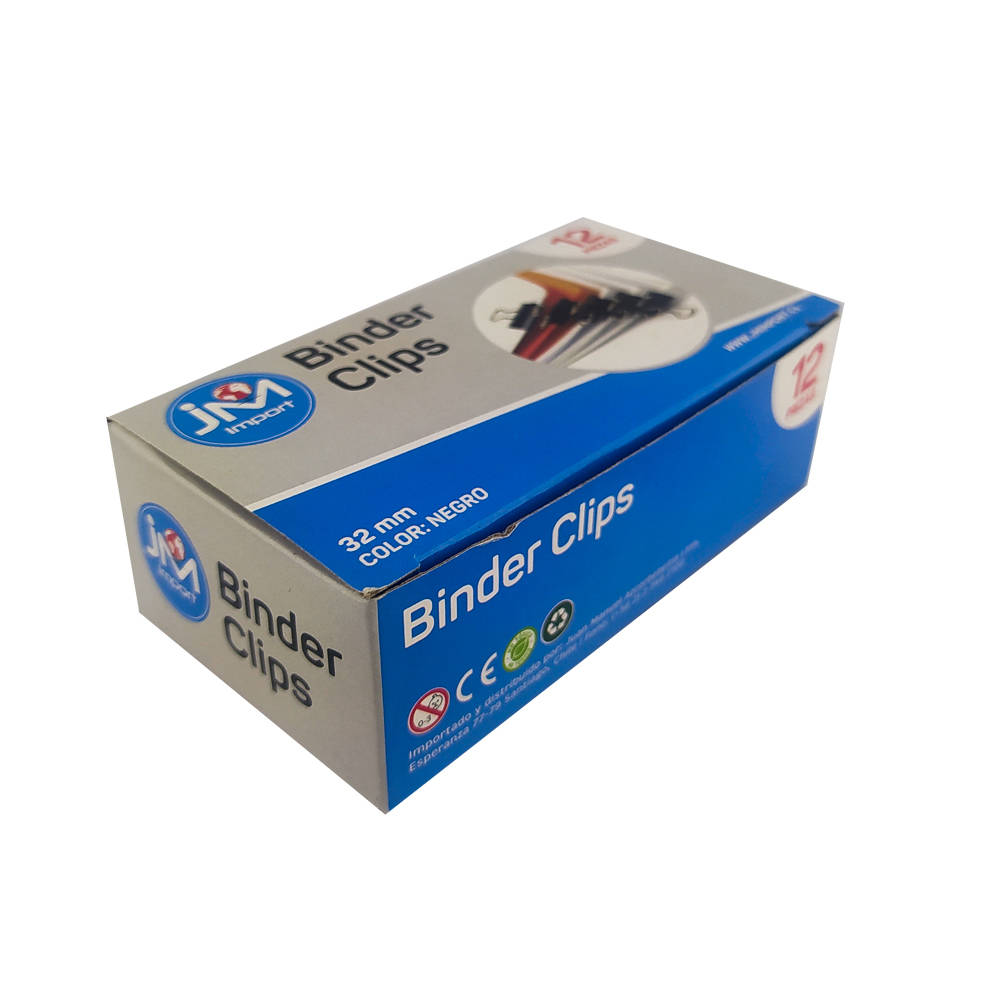 APRETADOR DOBLE CLIP 32mm NEGRO CAJA 12 UNIDADES JM