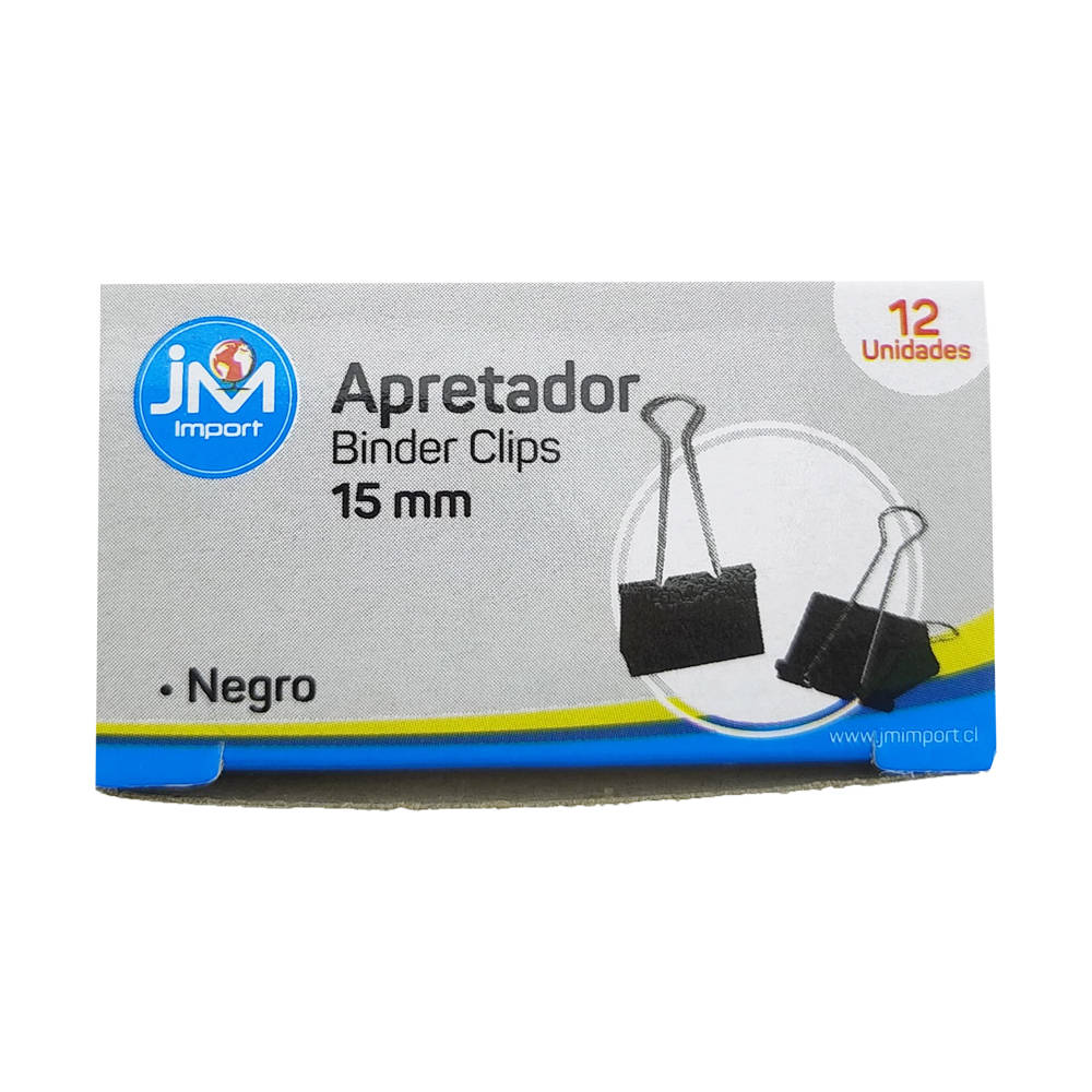 APRETADOR DOBLE CLIP 15mm NEGRO CAJA 12 UNIDADES JM