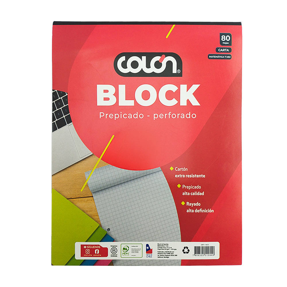 BLOCK DE APUNTES PREPICADO Y PERFORADO CARTA 80 HOJAS 7mm COLON