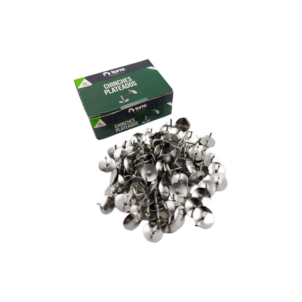 - Caja de 100 unidades de chinches plateados.