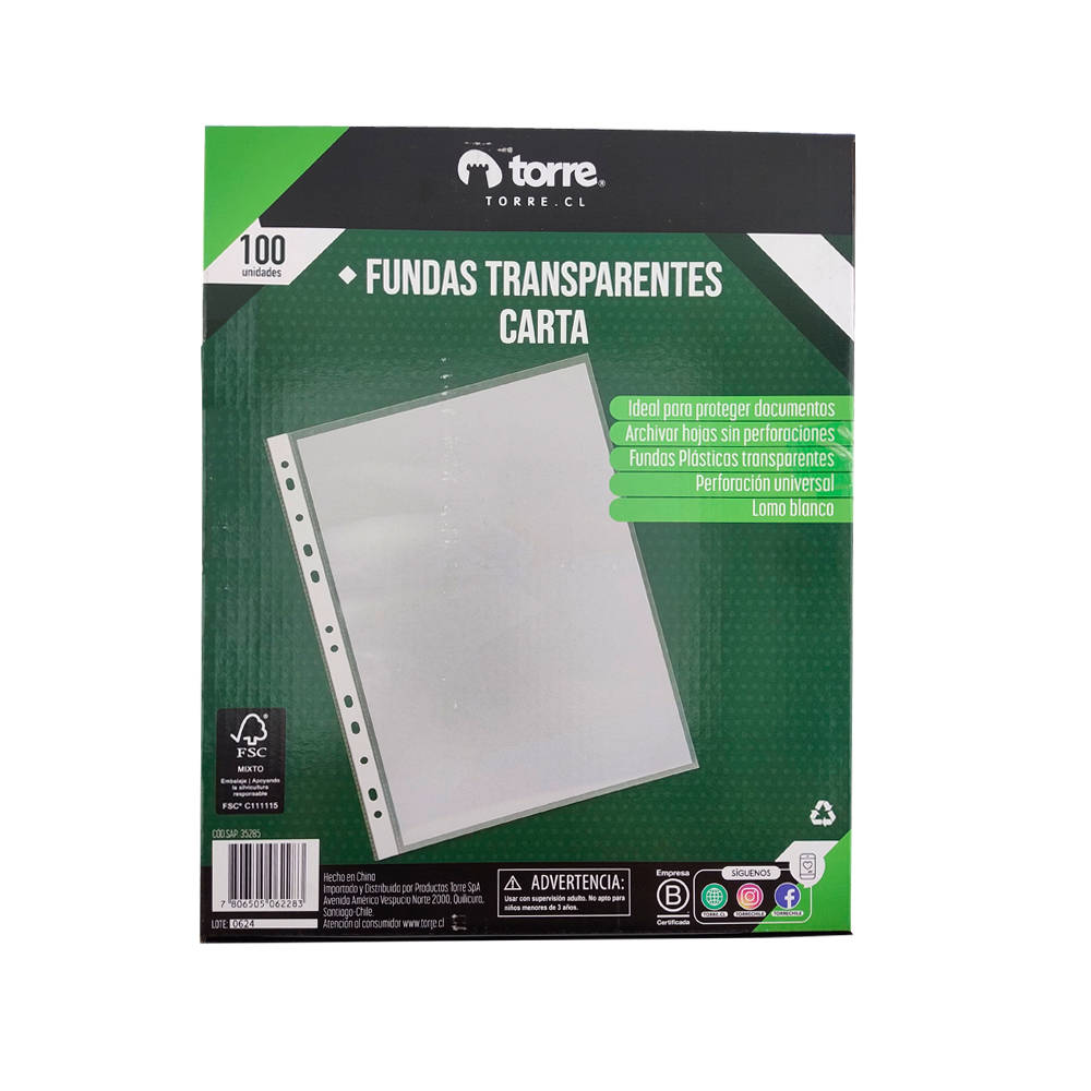 FUNDA PORTADOCUMENTOS CARTA TRANSPARENTE 100 UNID TORRE