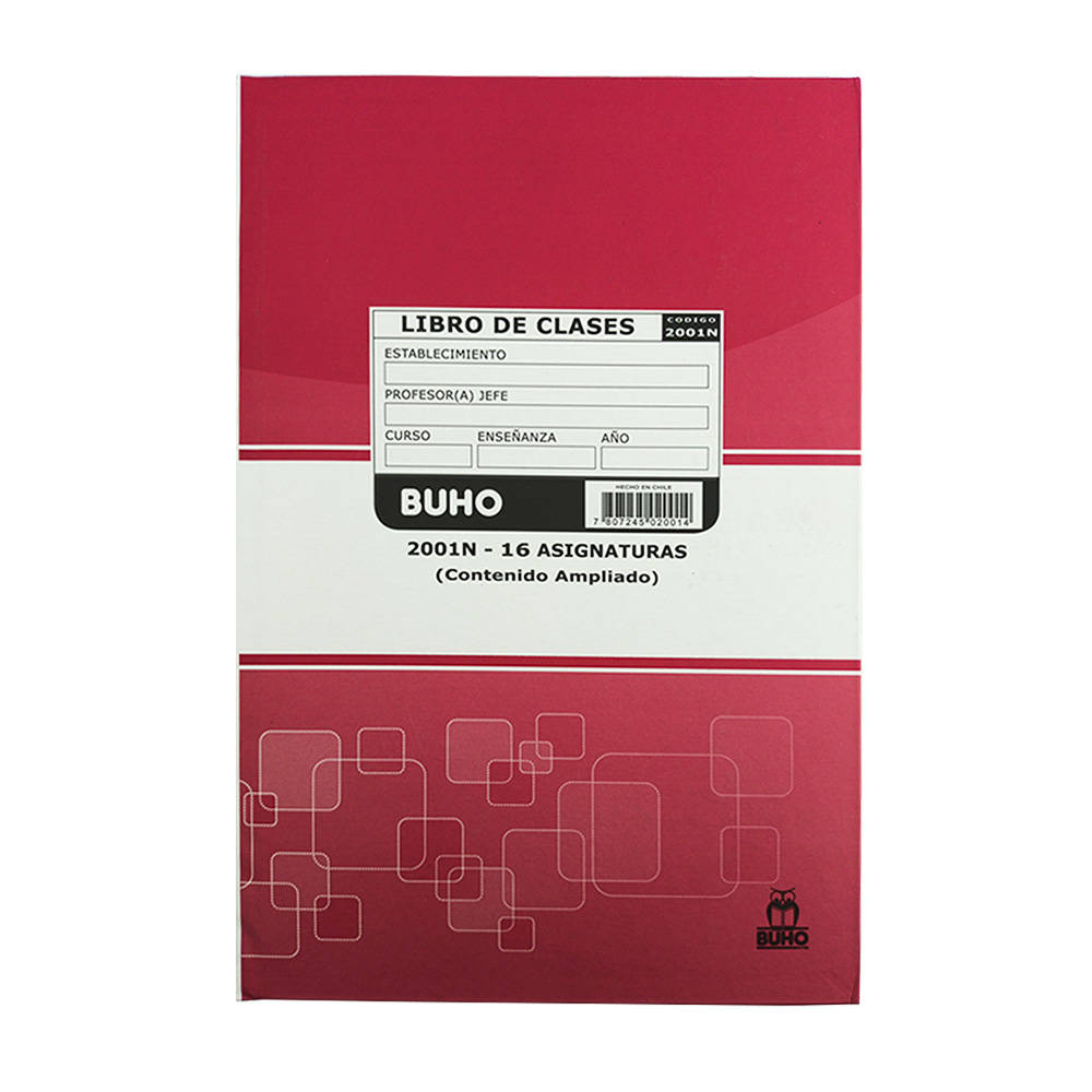 LIBRO DE CLASES ENSEÑANZA BÁSICA 16 ASIGNATURAS 144 hj EMP C/F 2001N BUHO