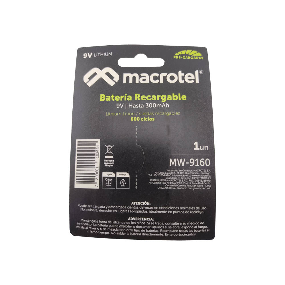 BATERIA RECARGABLE 9V 300MAH 01 u MACROTEL