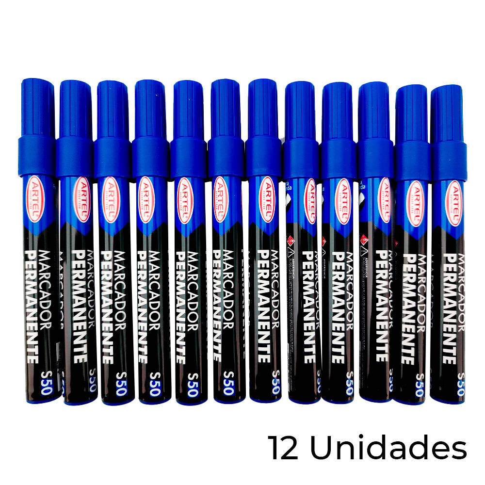 PLUMÓN PERMANENTE 12unid AZUL PUNTA REDONDA ARTEL
