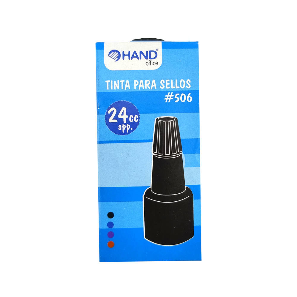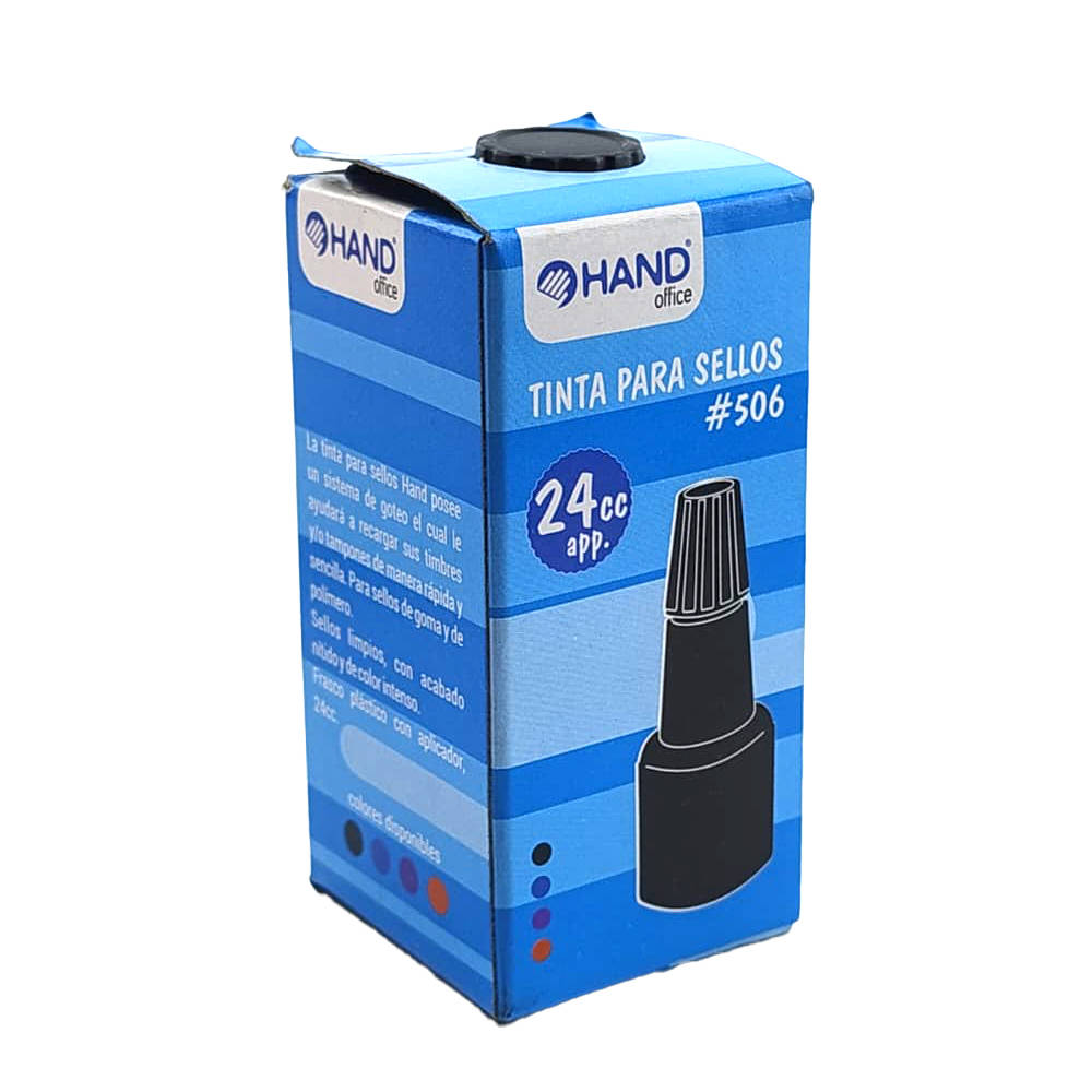 - Tinta de Sello Negra Hand en envase pequeño con tapa giratoria.