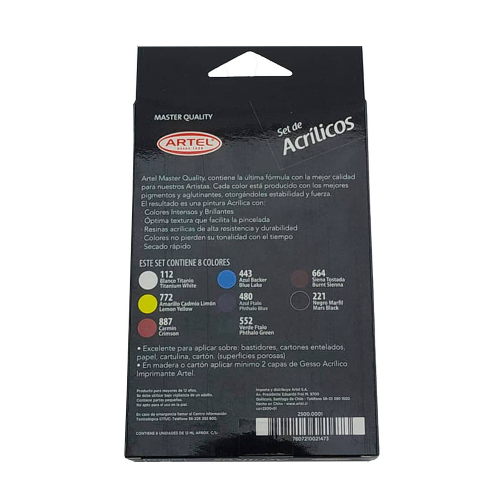 - Set de 08 tubos de pintura acrílica de 12 ml cada uno.