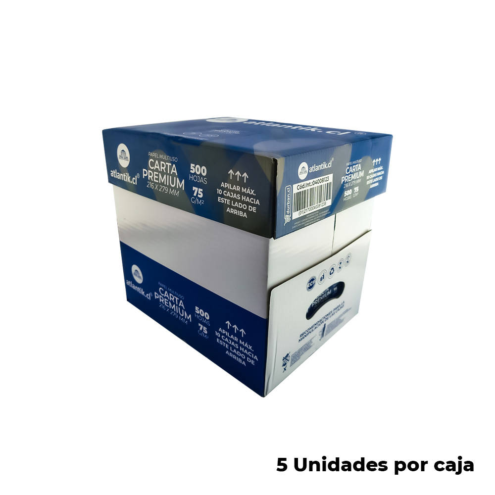 - Resma de 500 hojas de papel blanco tamaño carta de 75 gr/m².