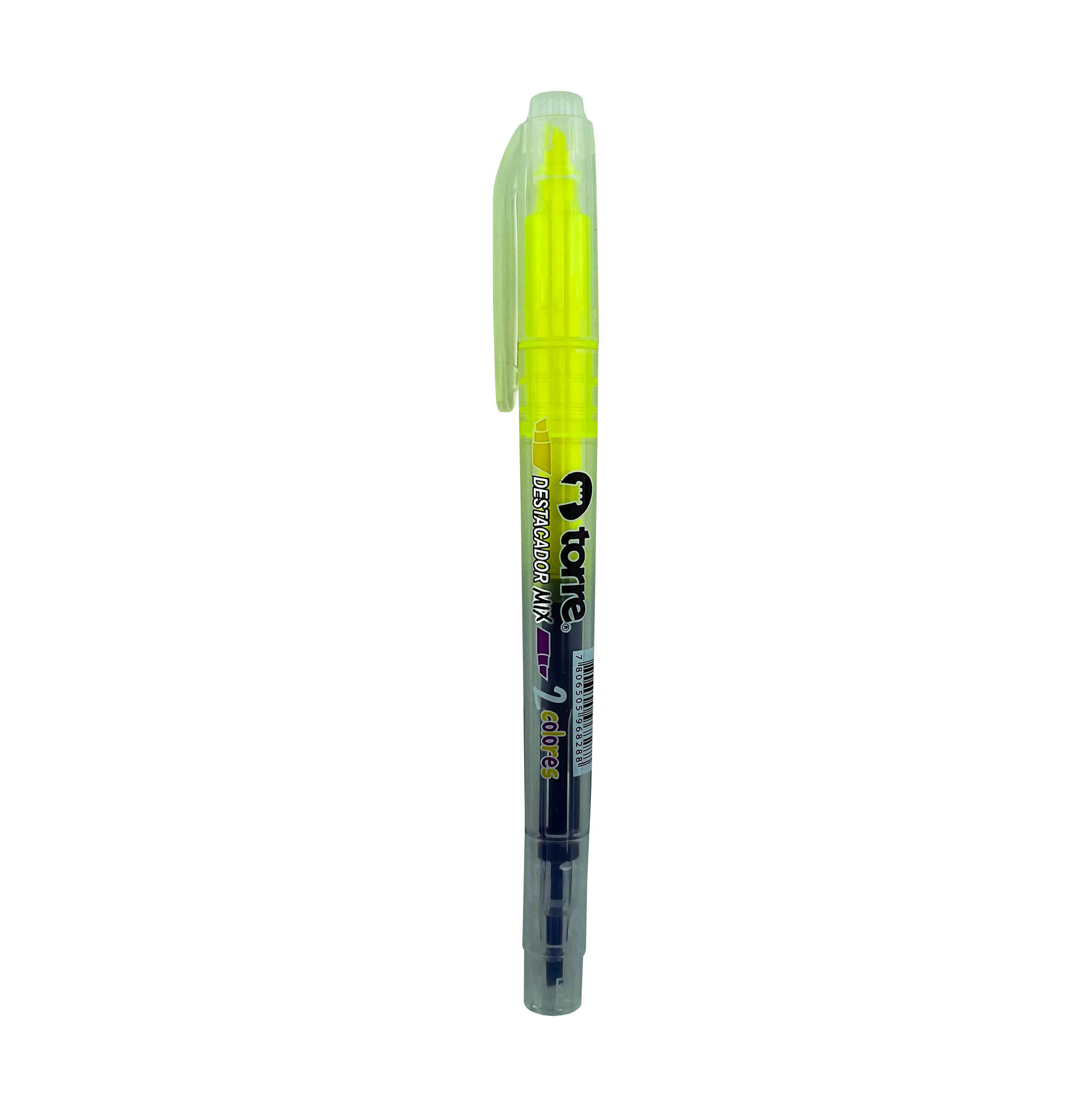 DESTACADOR DOBLE PUNTA 01 unid TIPO LAPIZ MORADO+AMARILLO TORRE