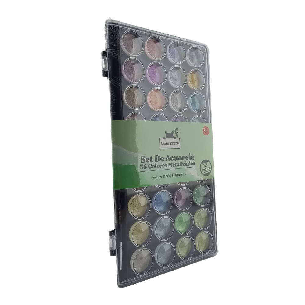 ACUARELA ESTUCHE 36 COL CON PINCEL METALIZADA GATO PRETO