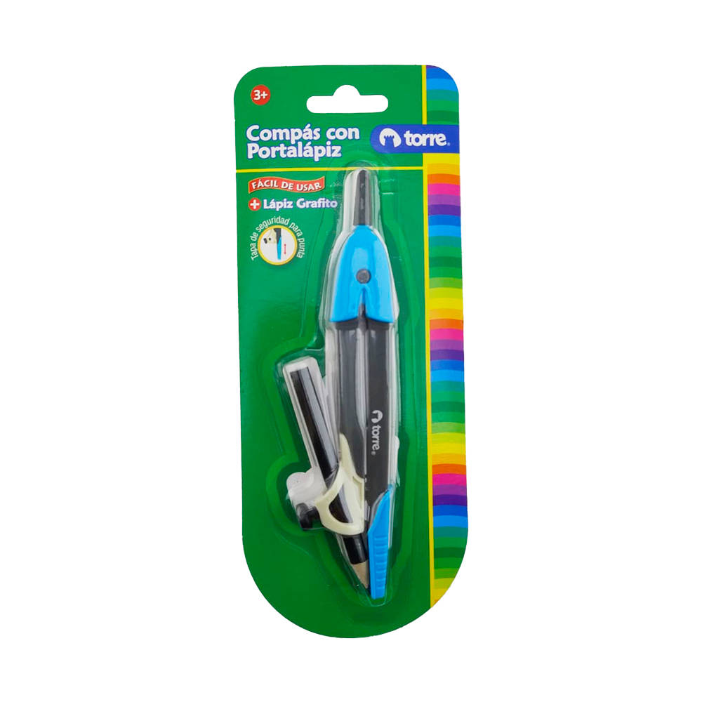 COMPAS PLASTICO C/LAPIZ TAPA SEGURIDAD 1 u TORRE
