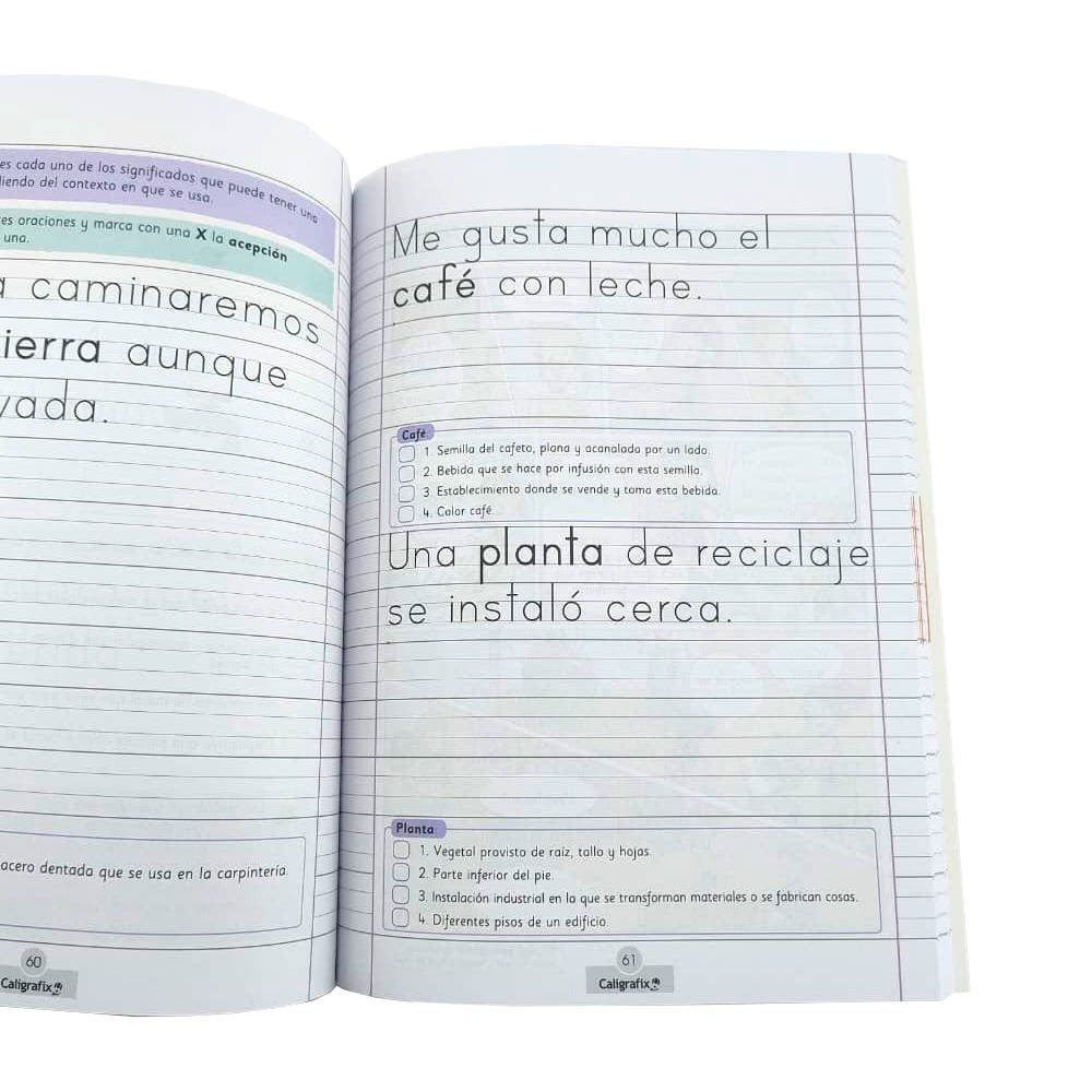- A través de las actividades de caligrafía, el cuaderno ejercita temas vistos durante el año escolar, siendo esta una buena estrategia para estudiar y reforzar conceptos.