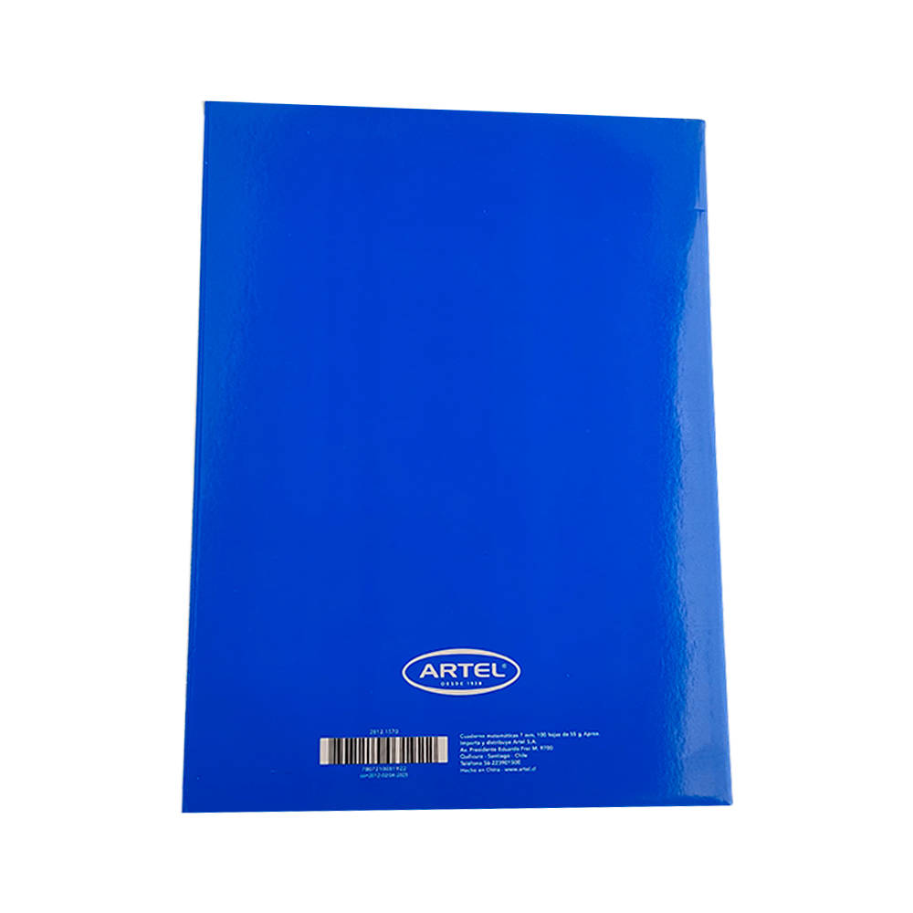 - Cuaderno Cuadriculado College y Engrapado con alambre galvanizado de tres costuras, tapas de cartulina dura y laminado en couché Brillante.