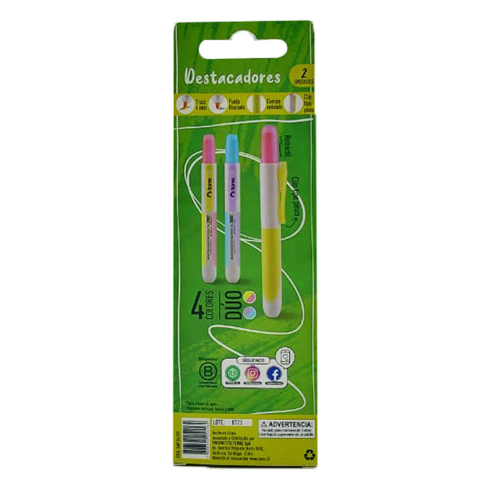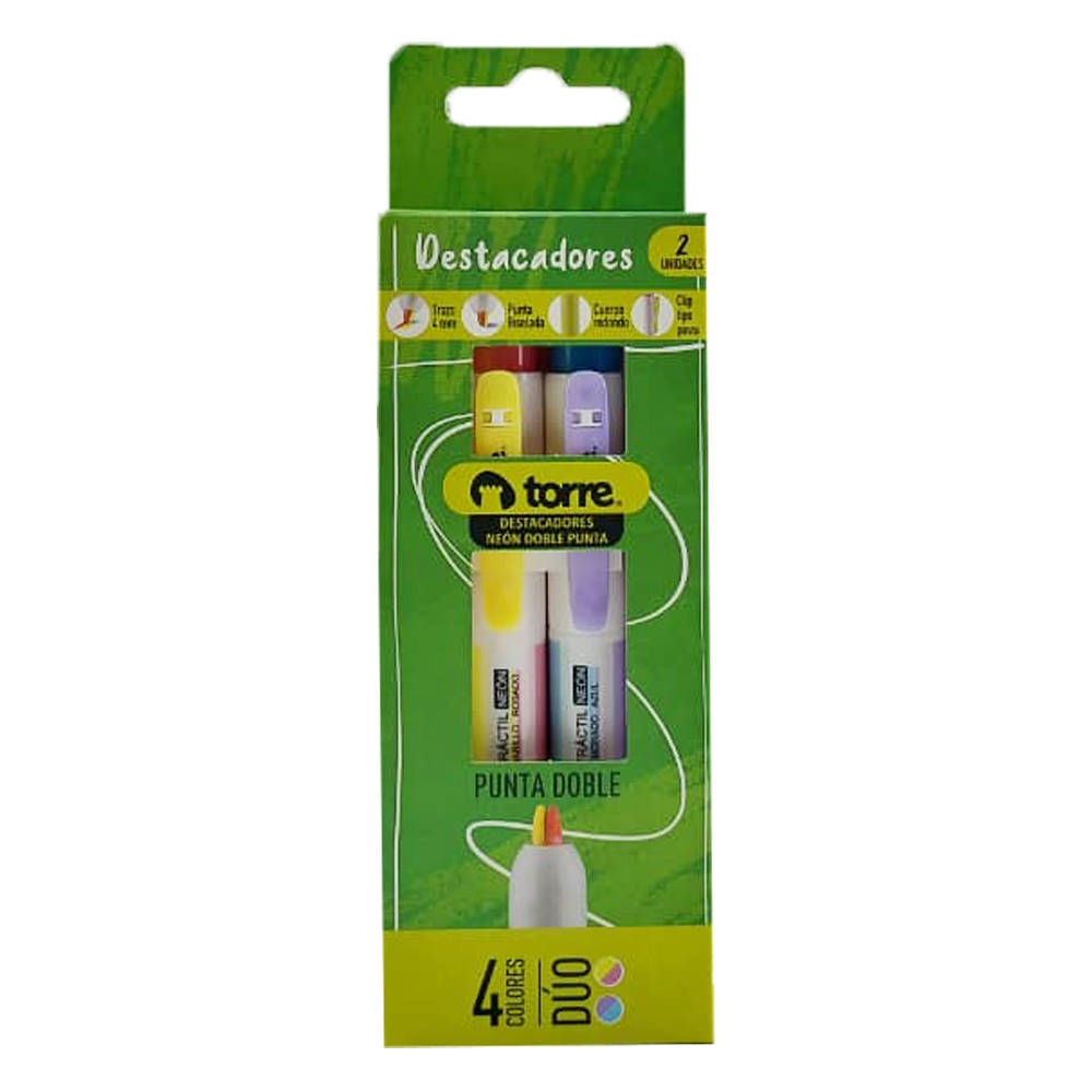 DESTACADOR CAJA 02 U 04 COLOR DOBLE PUNTA DUO NEON TORRE
