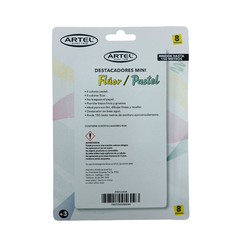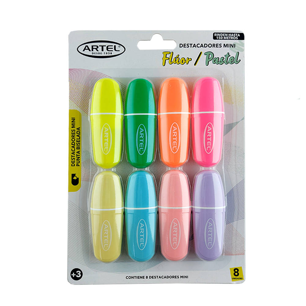 DESTACADOR BL MINI 04 unid PASTEL 04 unid FLUOR ARTEL