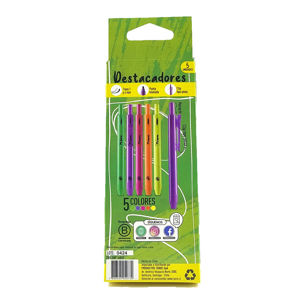 DESTACADOR RETRACTIL PUNTA BISELADA caja 05 u TORRE