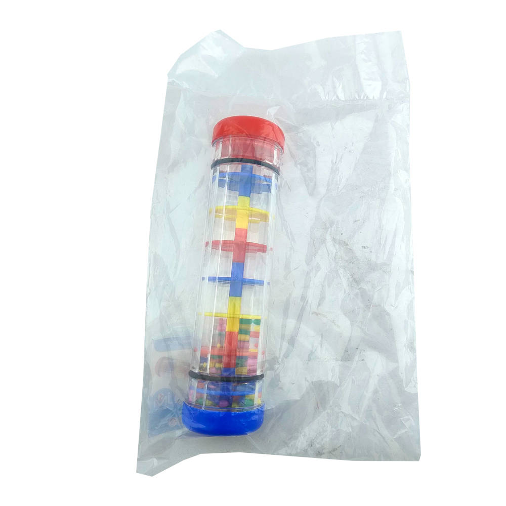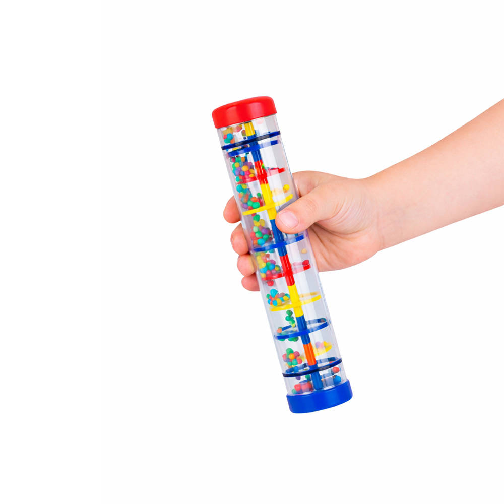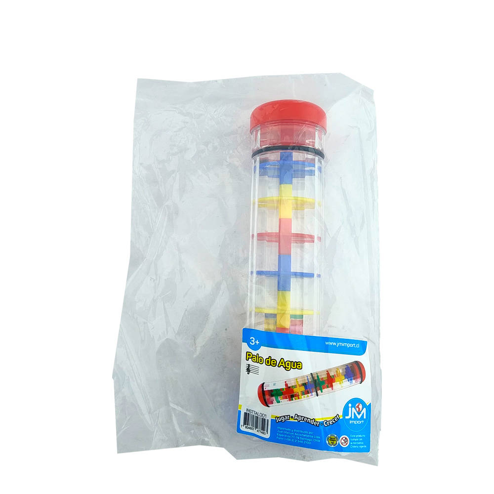 - Palo de agua plástico transparente, relleno de bolitas de colores.