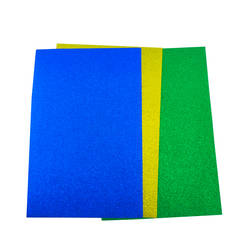 - Set de goma eva glitter de 3 colores: Dorado, azul y verde, de 20x30 cm.
