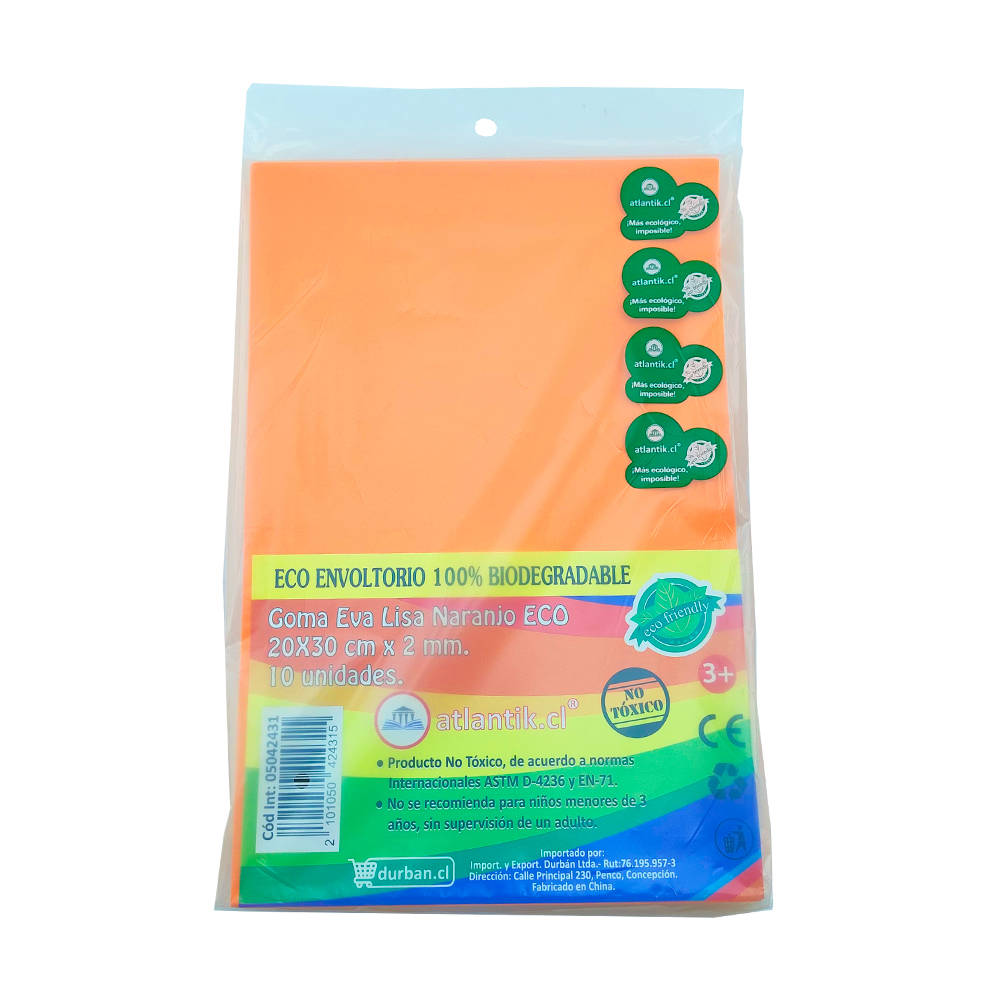 GOMA EVA LISA 20x30cmx02mm 10 u NARANJO ECO ATLANTIK