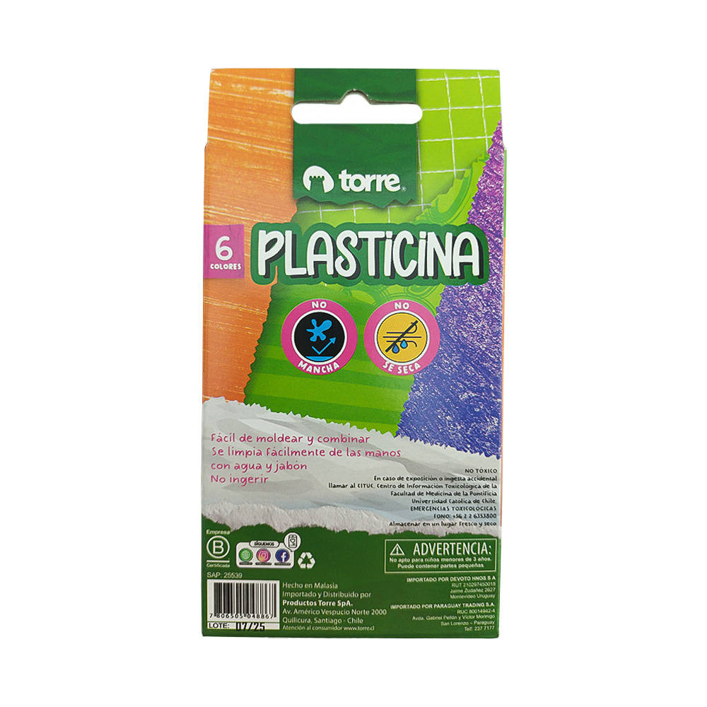 - Caja de 108 gramos de plasticina de 6 diferentes colores.