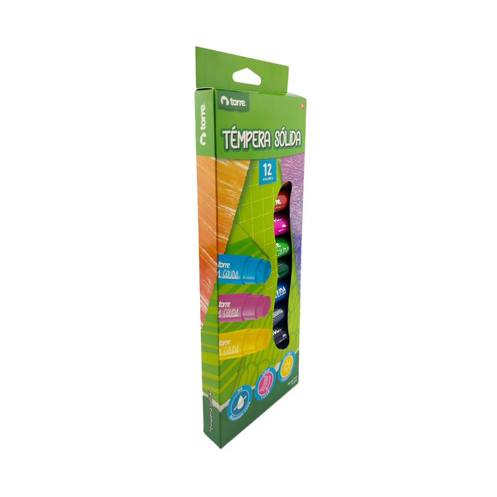 - Tempera Sólida Torre tiene un diseño cilíndrico, tipo labial con tapa rosca para fácil uso y sellado rápido.