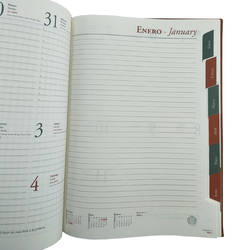 - Con marcadores mensuales al costado de la agenda que permiten un fácil acceso a las fechas de interés.