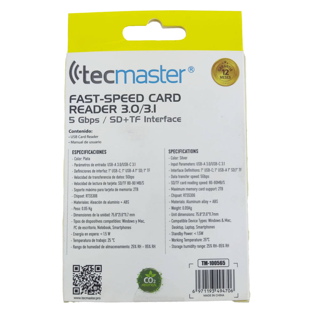 LECTOR TARJETA SD 3.0 TM-100565 TECMASTER