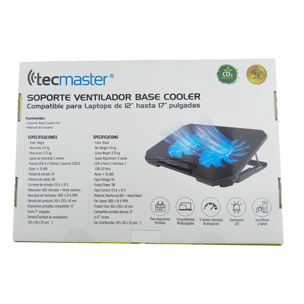 BASE NOTEBOOK o LAPTOP PLASTICO CON VENTILADOR TM-100564 TECMASTER