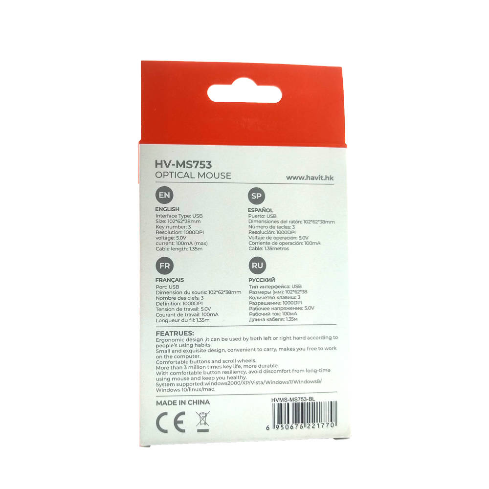 MOUSE ALAMBRICO OPT HV-MS753 COLORES HAVIT