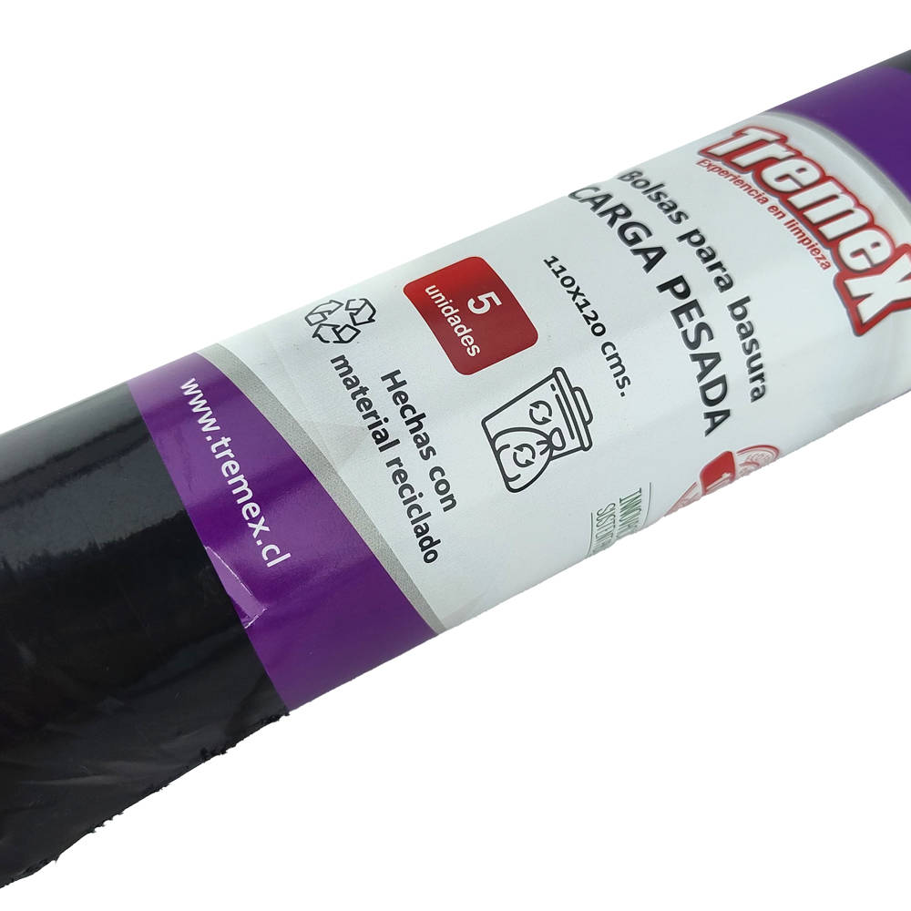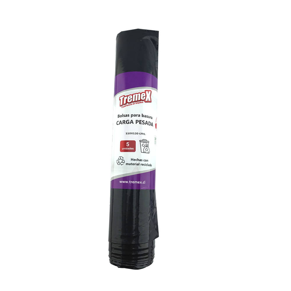 BOLSA BASURA 110x120cm GRANDE 05 u NEGRA CARGA PESADA TREMEX